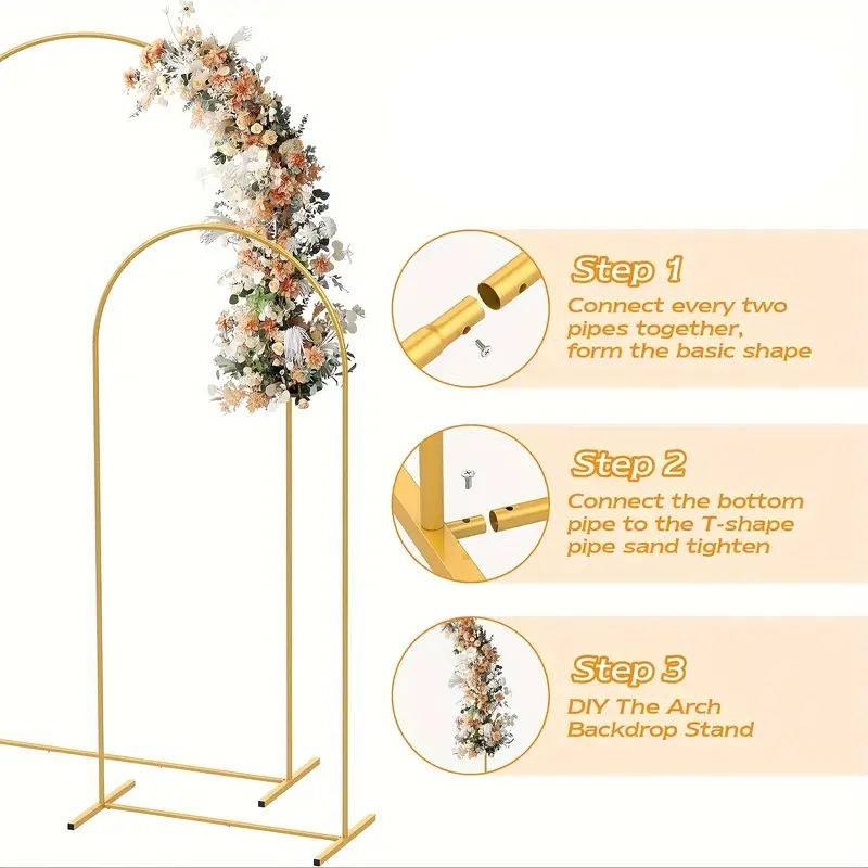 Support d'arche de ballons réglable en métal doré SHJY FY-JSGM 6FT-7.2FT pour toile de fond florale de mariage, cadre de fête d'anniversaire, événement, photomaton