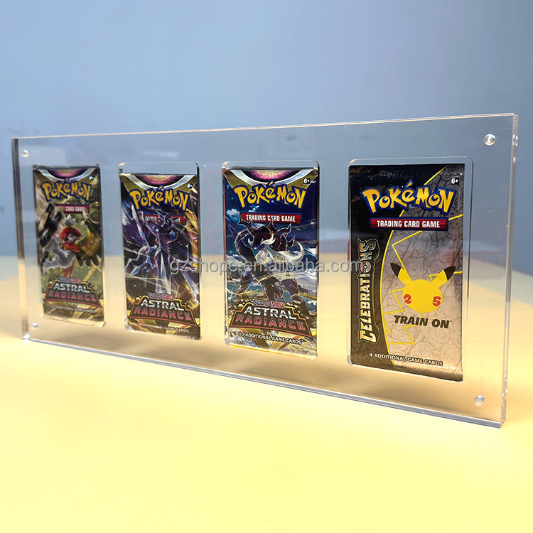 SHP vente directe d'usine Pokemon cartes boîte Packs Original acrylique Booster emballage 4 fentes vitrine Pokemon Booster Pack étui