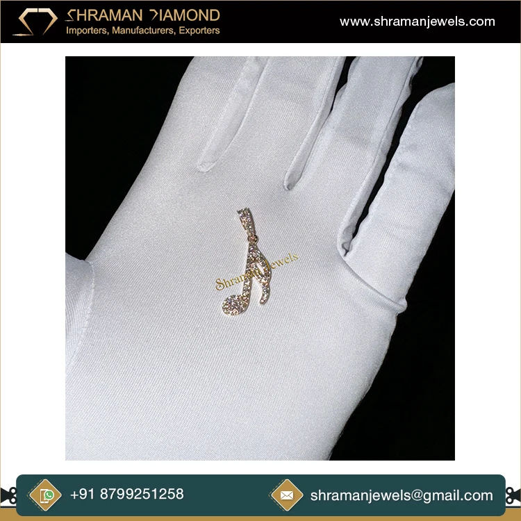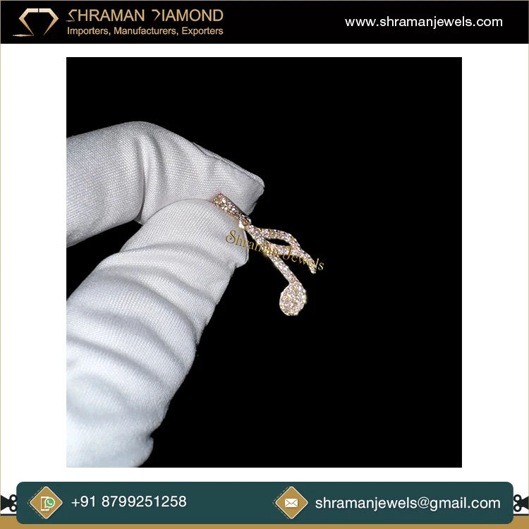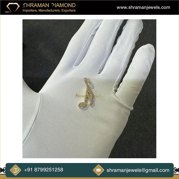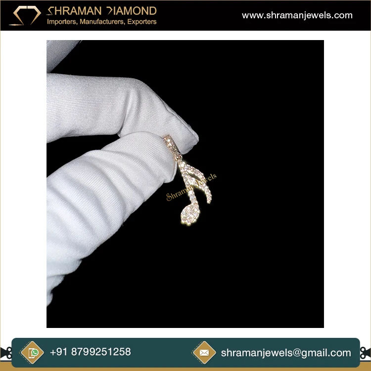 SHRAMAN JEWELS Collier Pendentif Minimaliste Note de Musique en Or Massif 14K avec Diamant Naturel Brillant, Unisexe, pour Amateurs de Musique