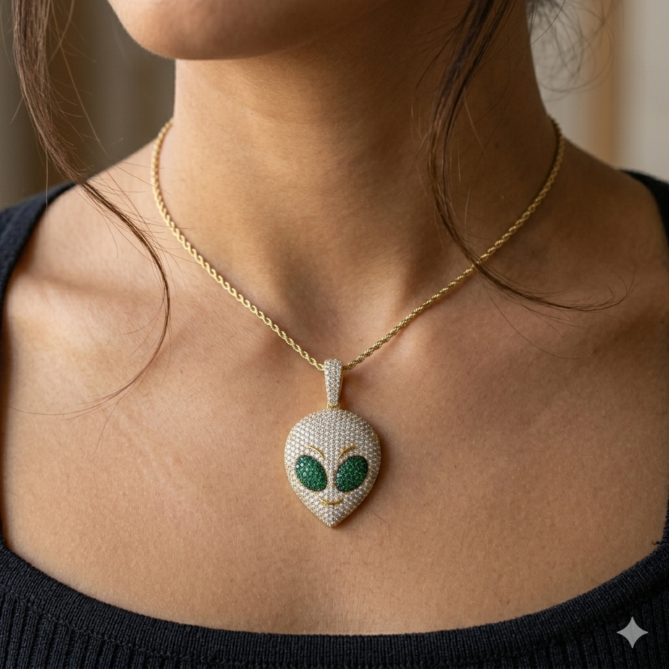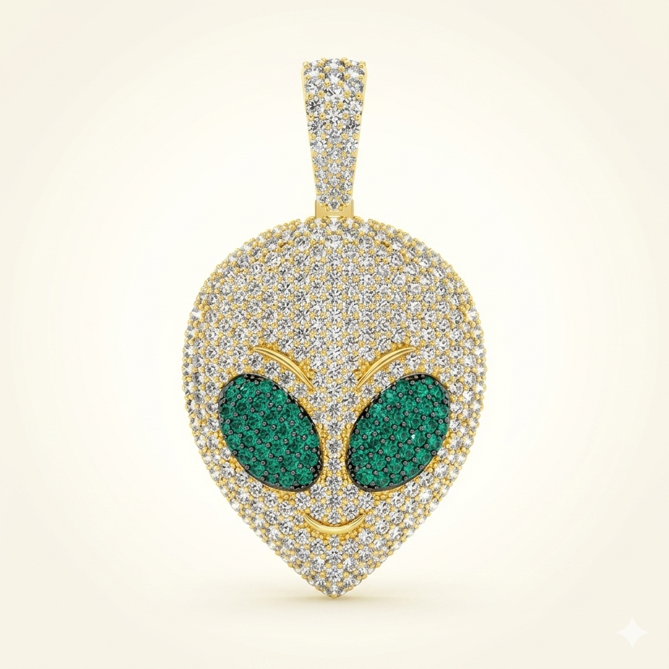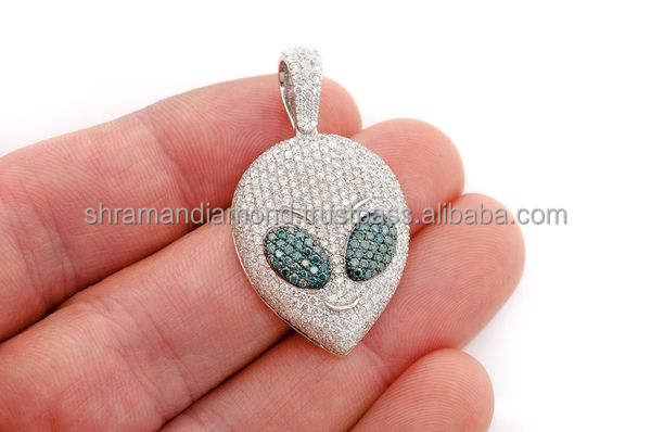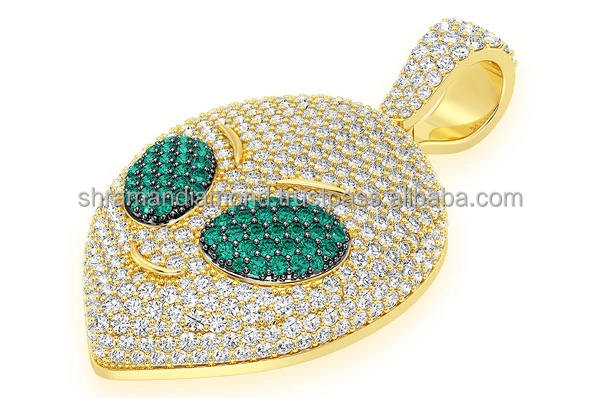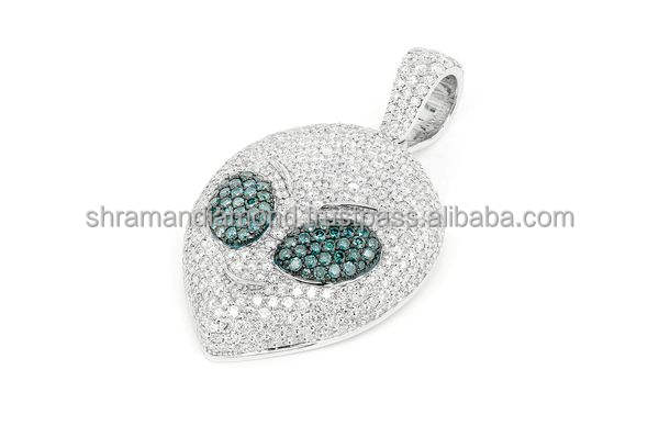 SHRAMAN DIAMOND Collier Pendentif Tendance en Argent 925 Plaqué Rhodium avec Diamant Moissanite Visage d'Alien de Dessin Animé Personnalisé pour Fêtes d'Halloween