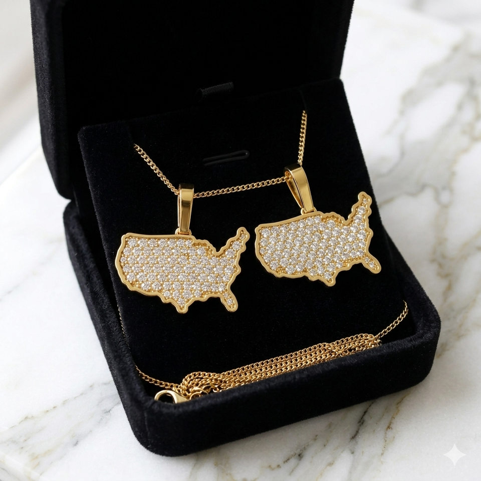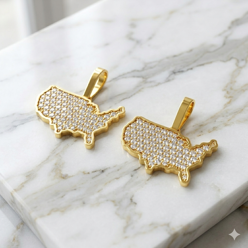 SHRAMAN DIAMOND Collier Pendentif Carte de l'État de New York en Or 10K Plaqué Or avec Diamants de Laboratoire Personnalisables et Sertis, Tendance, Unisexe