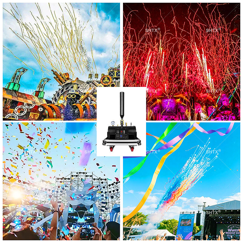 SHTX Canon à confettis électrique DMX 512 pour scène stade CO2 pour spectacles concerts et célébrations Machine à confettis