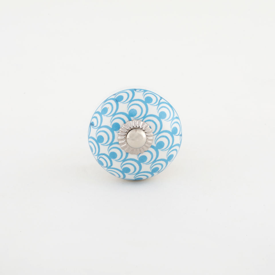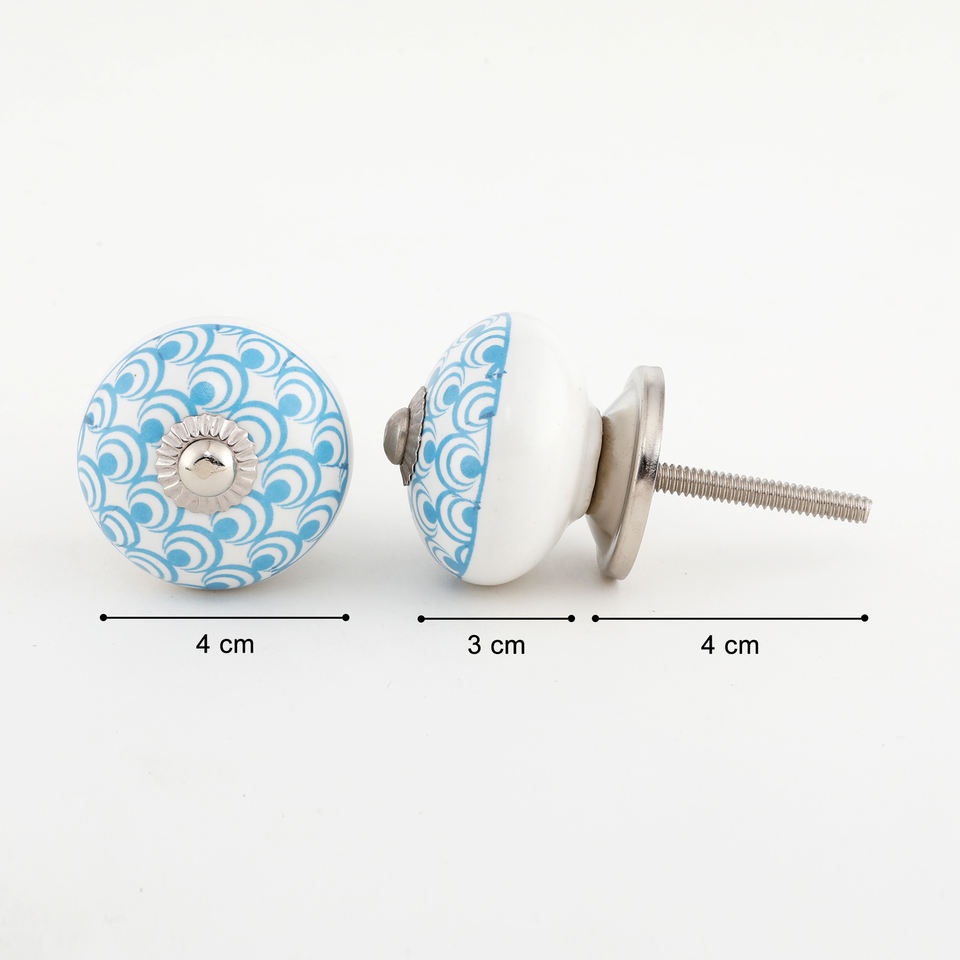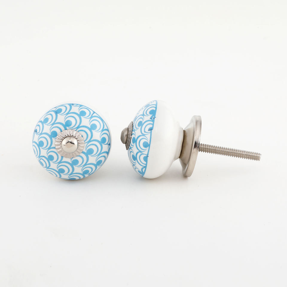 Poignée de tiroir en céramique réglable géométrique bleu ciel et blanc SHUBHAM, poignée décorative pour armoire, motif en forme de croissant, chambre à coucher, hôtel