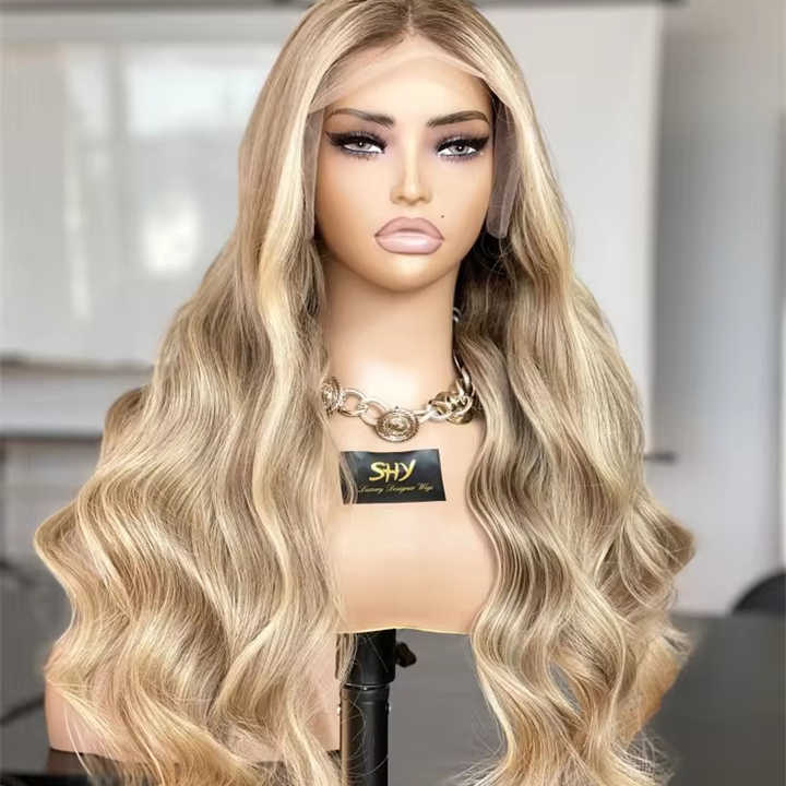 SHY 13x4 dentelle frontale perruques de cheveux humains mettre en évidence brun ombre blond cendré 613 couleur Hd transparent pleine dentelle perruques de dentelle pour les femmes