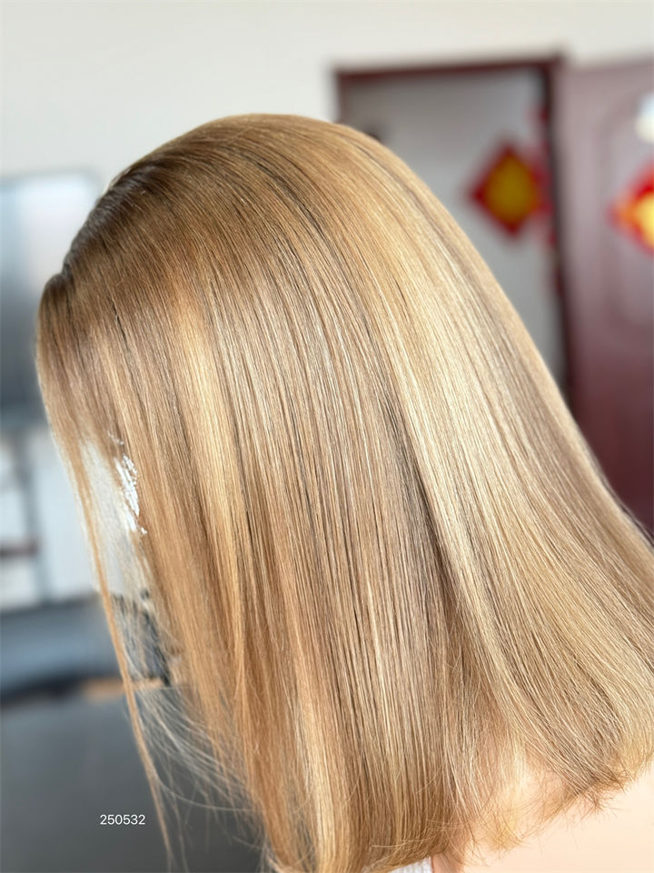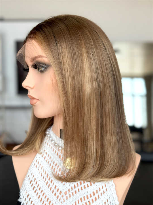 SHY Factory Perruques Bob Lace Front en Cheveux Humains, Coupe Droite, Mèches Blondes, Sans Colle, Dentelle HD 13x5