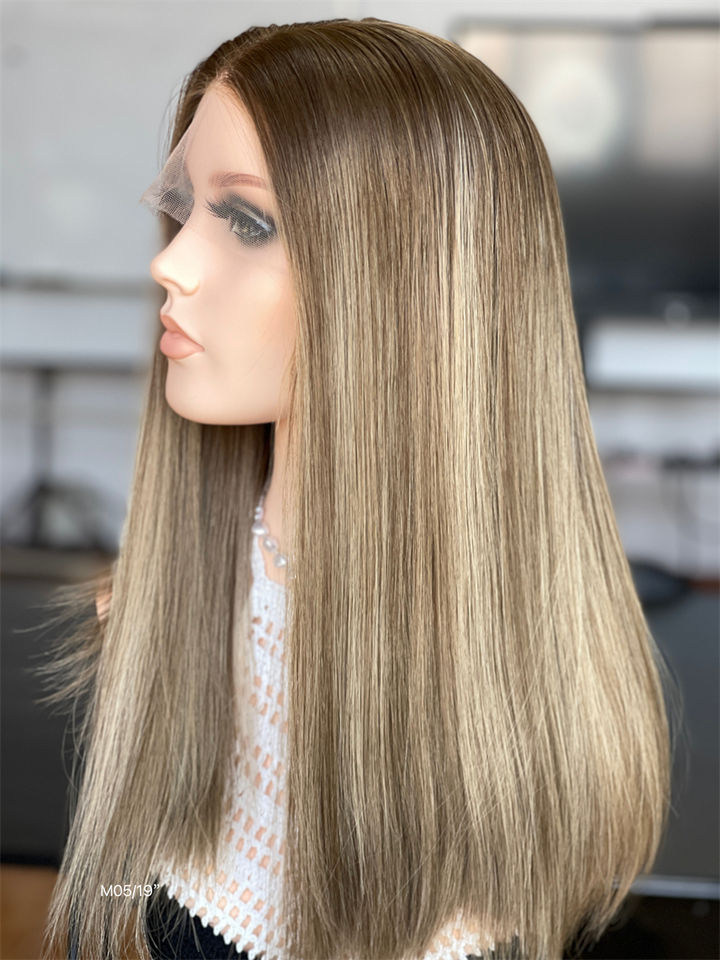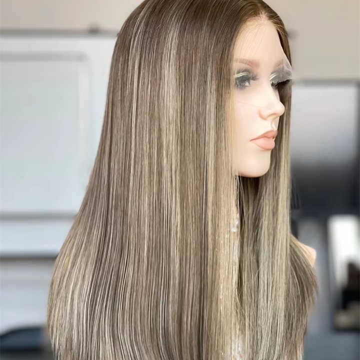 SHY usine certifiée 100% cheveux humains juif casher perruque cheveux slaves Balayage mis en évidence HD Lace Top perruques juives