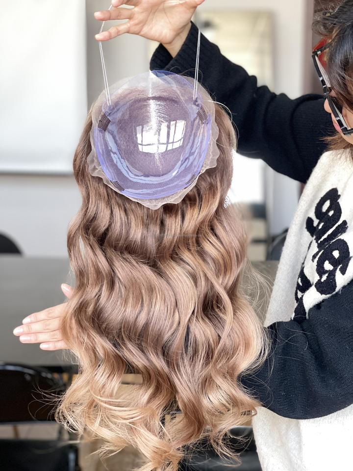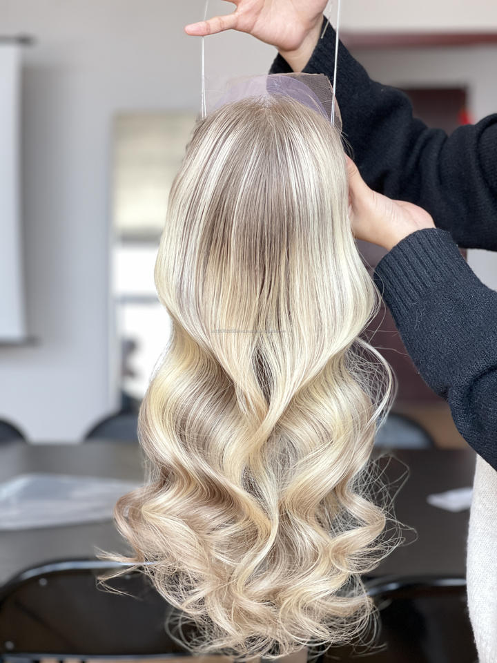 SHY Nouveauté Perruque Mini Topper en Dentelle Italienne Cheveux Humains Vierges Européens 8*8 Nœud Unique 5.0 12 Pouces Blond pour Femme Blanche