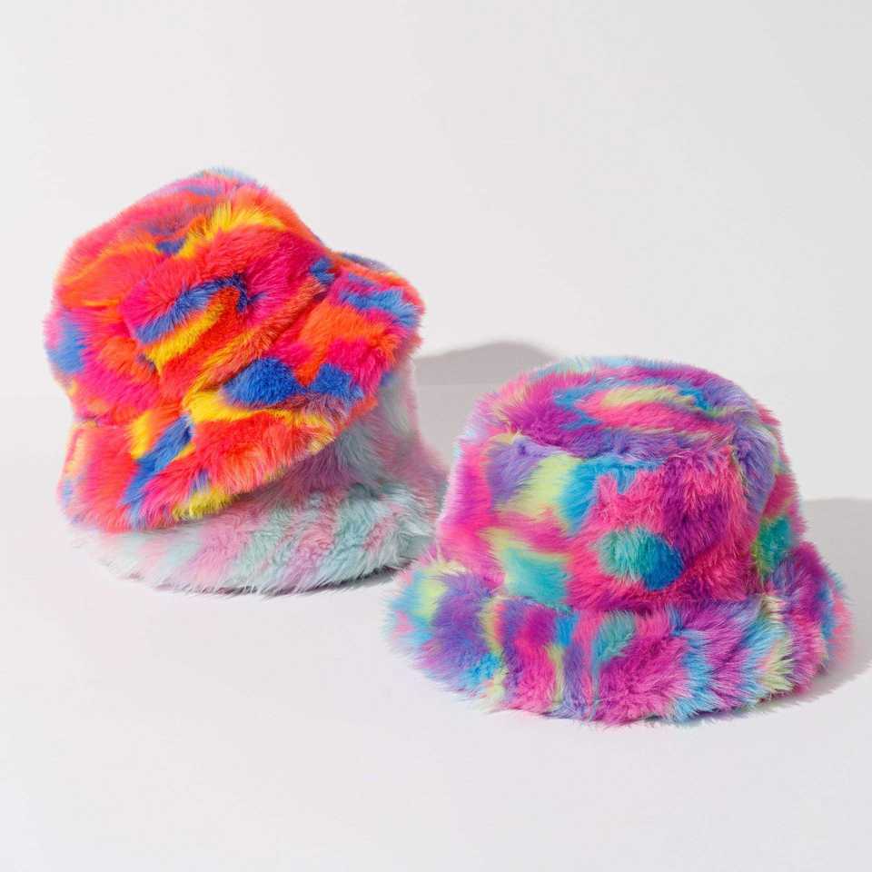 SIDDIQUI HOSINEX 2024 Women's Flat Top Faux Fur Bucket Hat Solid Laminated Casual Plush Seamless Dyed Winter Warm Bow Ripped