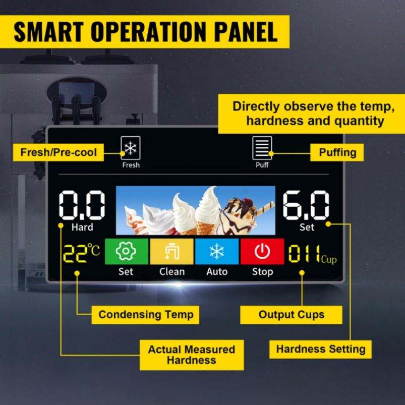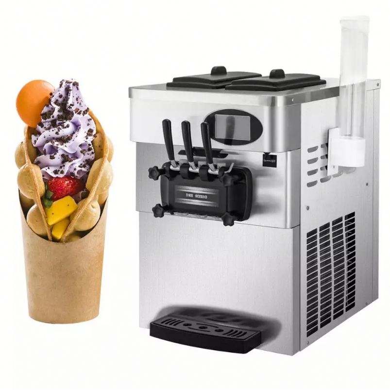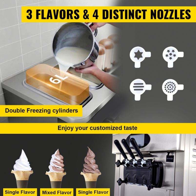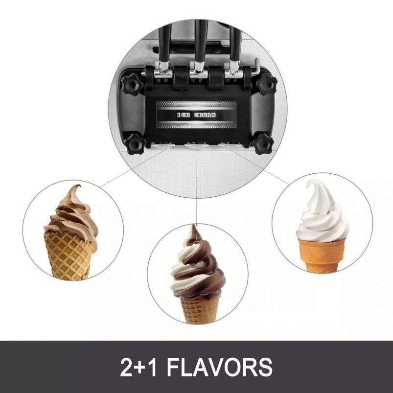 SIHAO-826T 20-28L/H Commercial 2450W Machine à crème glacée molle avec 2 + 1 saveurs mélangées