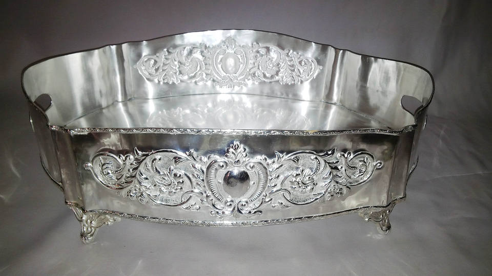 Plateaux de service ovales gaufrés, en argent sterling, pour fêtes, maison et hôtel