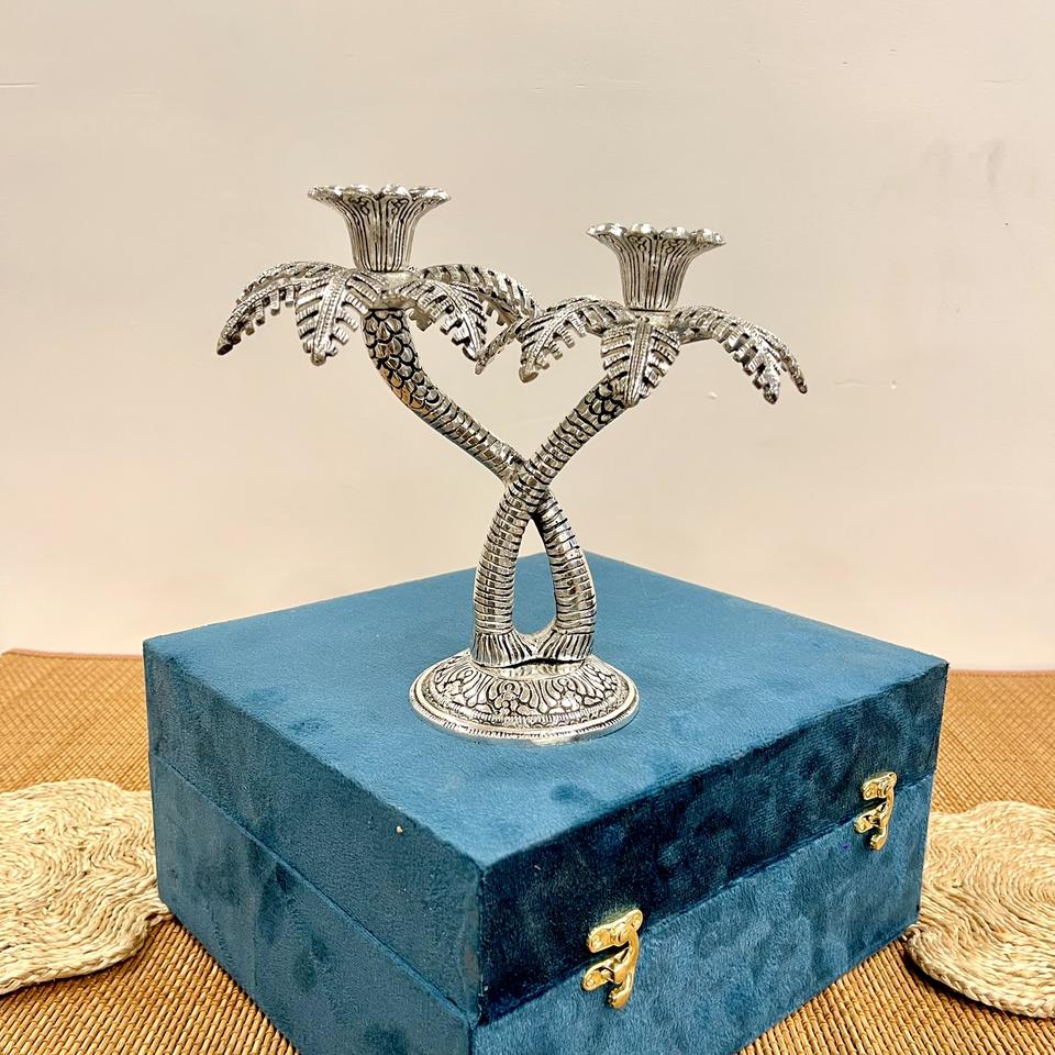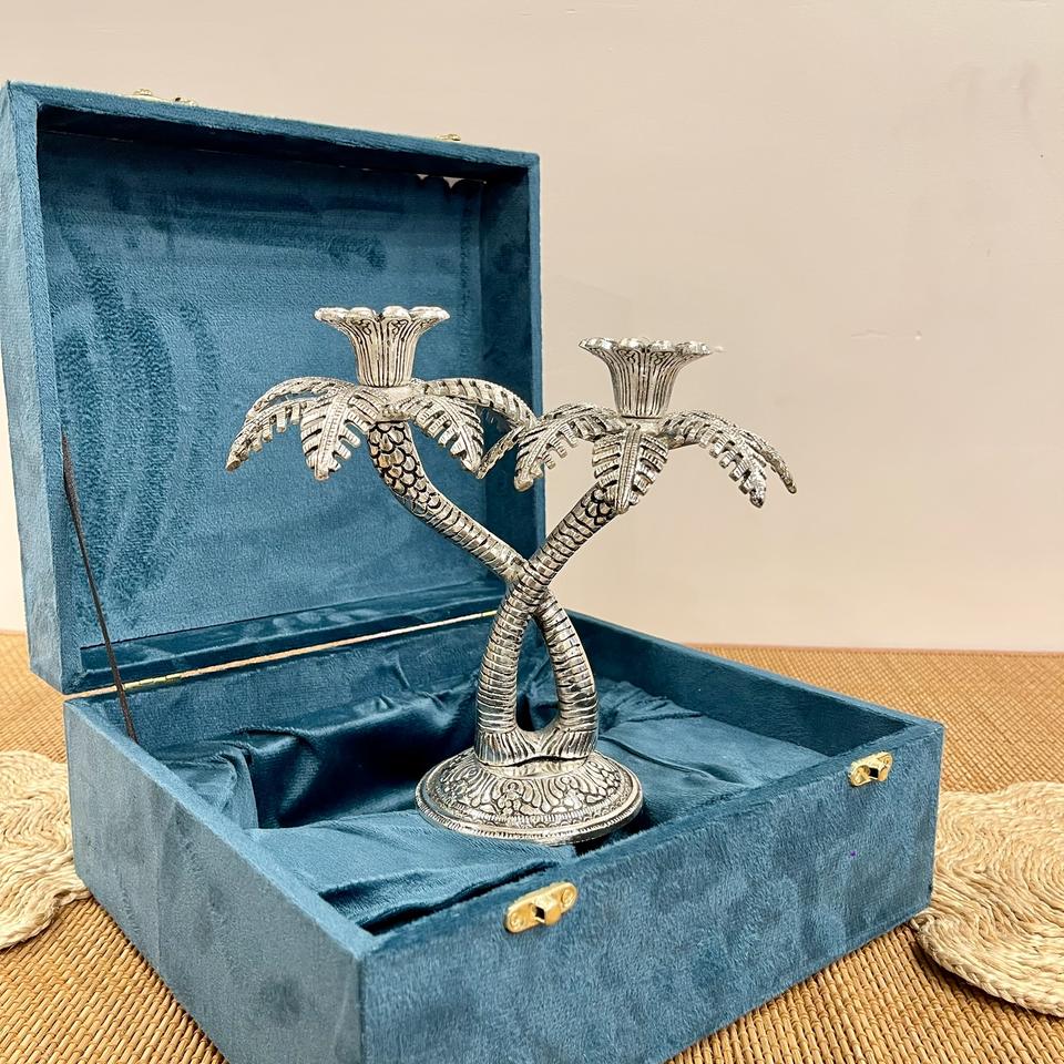 Support de bougie en forme de palmier plaqué argent