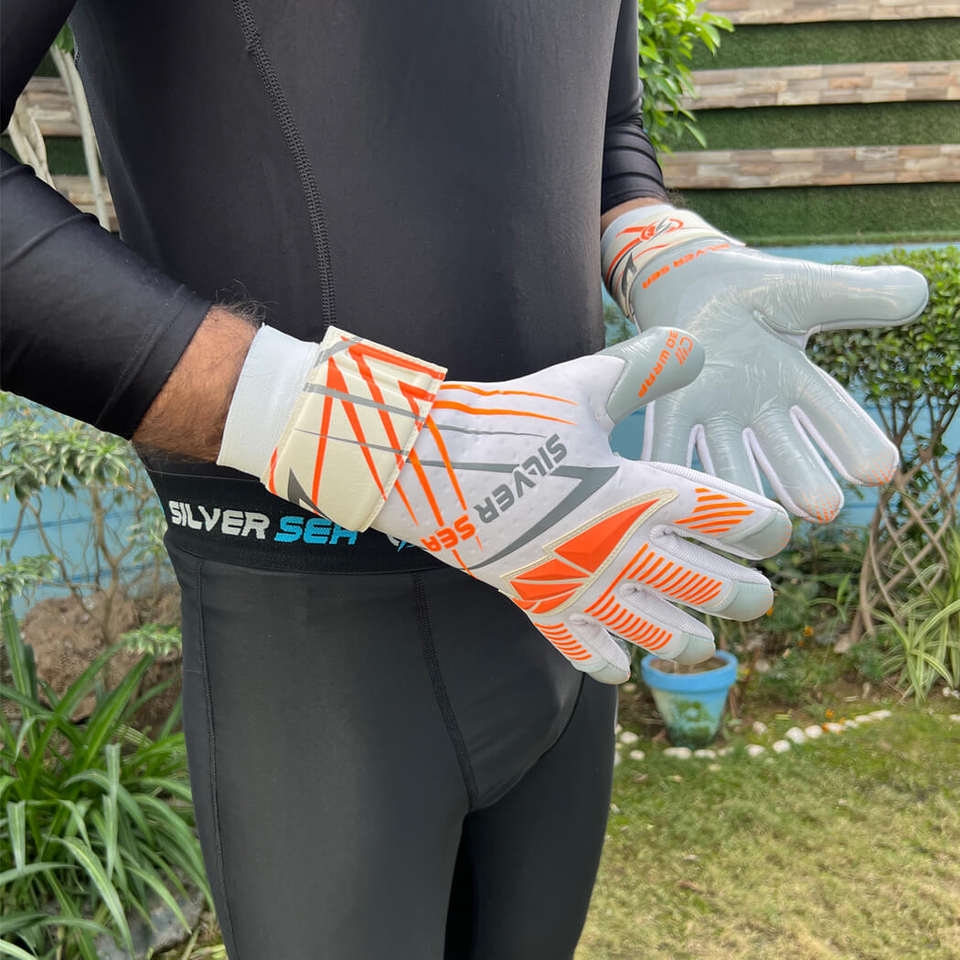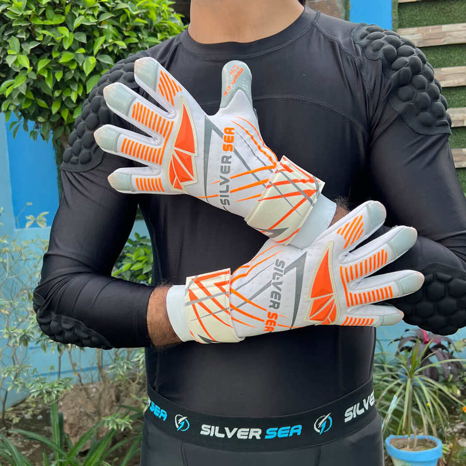 Gants de gardien de but SILVER SEA SPORTS sur mesure, haute qualité, en latex allemand, respirants, antidérapants, avec protection des doigts.