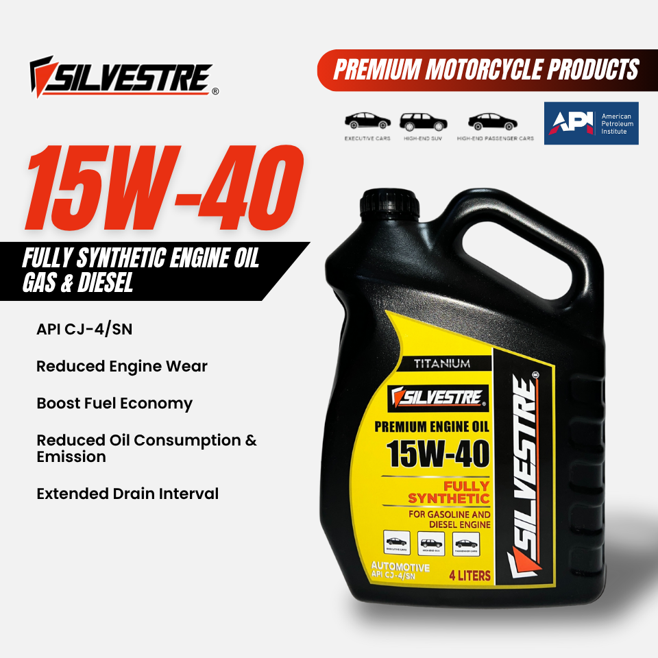 Huile moteur entièrement synthétique SILVESTRE 15W-40 pour véhicules essence et diesel (API CJ-4/SN) 4 litres en conteneur plastique PH