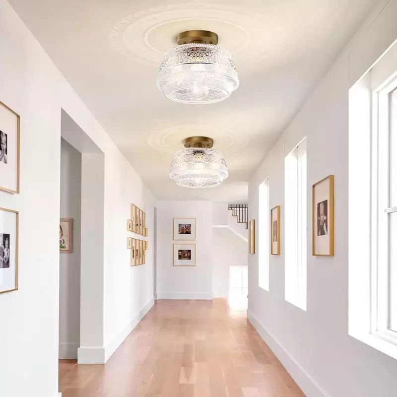 Plafonnier semi-encastré industriel SIMIG, luminaire en verre globe doré pour couloir, entrée, cuisine, salle de bain