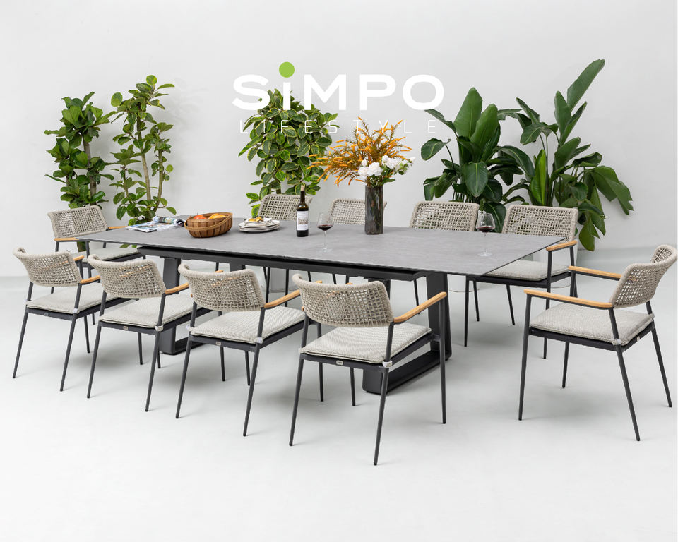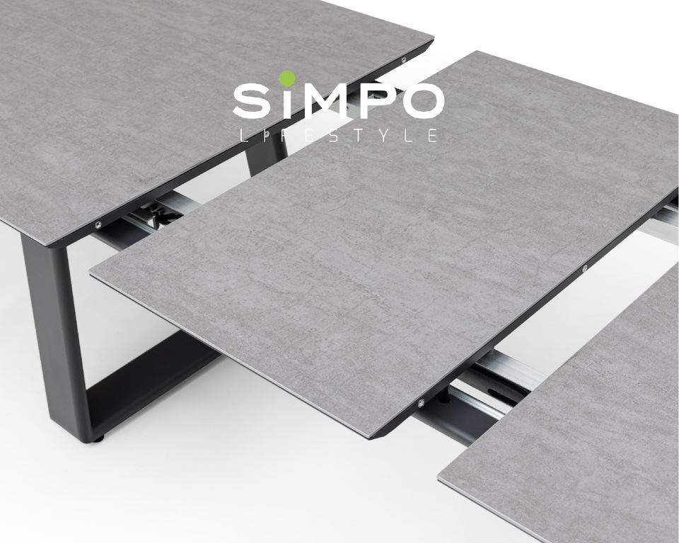 Ensemble de mobilier d'extérieur haut de gamme SIMPOLIFESTYLE, table extensible en pierre frittée et aluminium PARIS, pour jardin, salle à manger, balcon