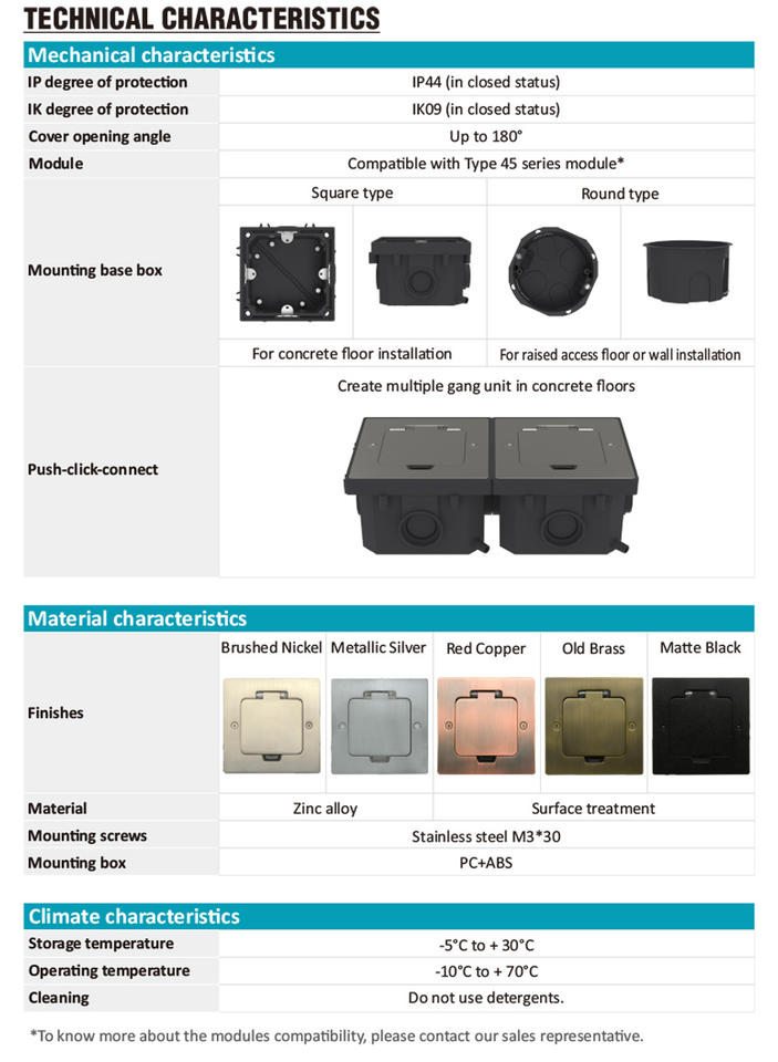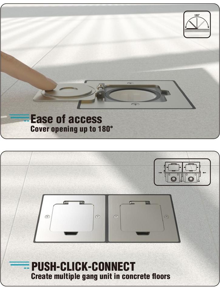 SINOAMIGO Boîte de prise de sol étanche carrelée dans la boîte de sol Prise de courant Prise de courant européenne