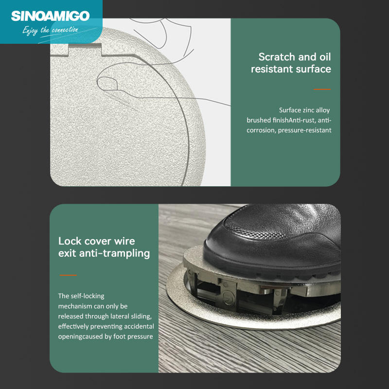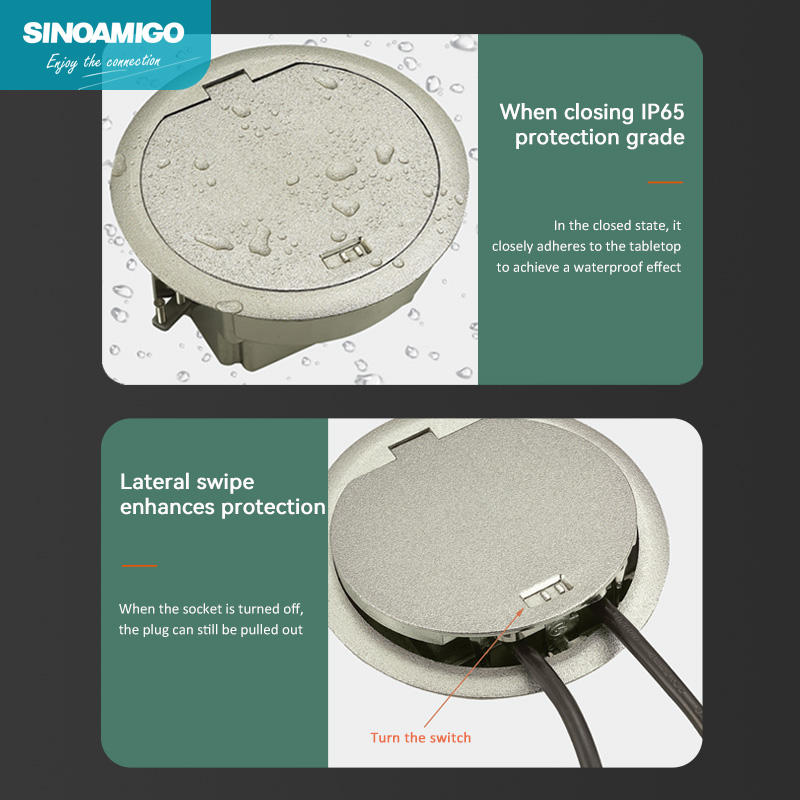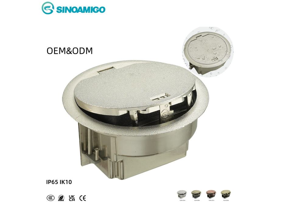 SINOAMIGO Boîte de prise de sol étanche IP65 ronde en alliage de zinc pour plancher d'accès surélevé ou sol en béton