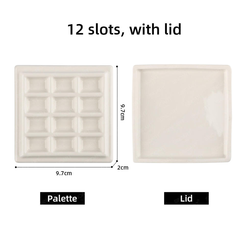 Palette en céramique pour artiste SINOART, 12 fentes, 2 cm d'épaisseur, palette en céramique pour aquarelle avec couvercle, palette en porcelaine blanche carrée pour aquarelle