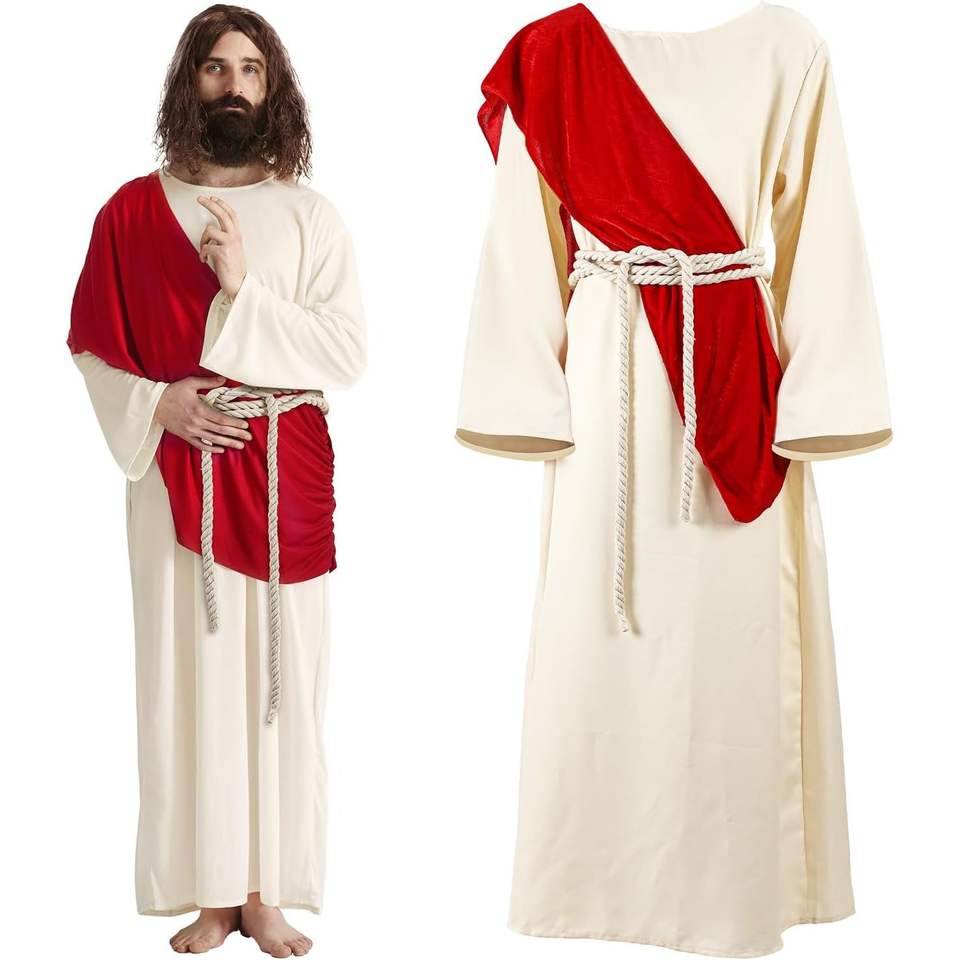 Costume de Jésus SINSEN pour adulte, 3 pièces, robe religieuse avec écharpe rouge et ceinture en corde pour Halloween, Pâques, déguisement