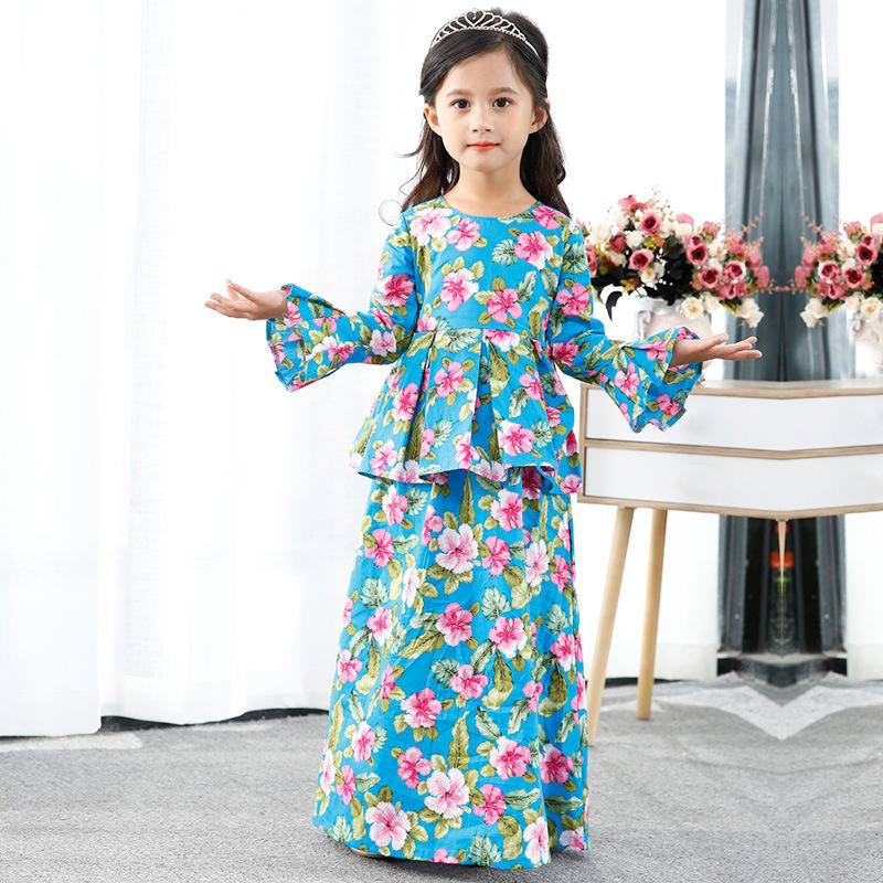 SIPO - Robe musulmane une pièce pour filles, Baju Kurung malaisien, jupe florale pour enfants, robe longue à manches longues, abaya pour filles