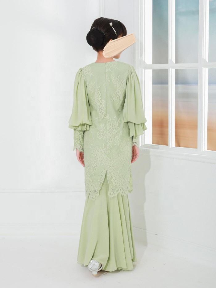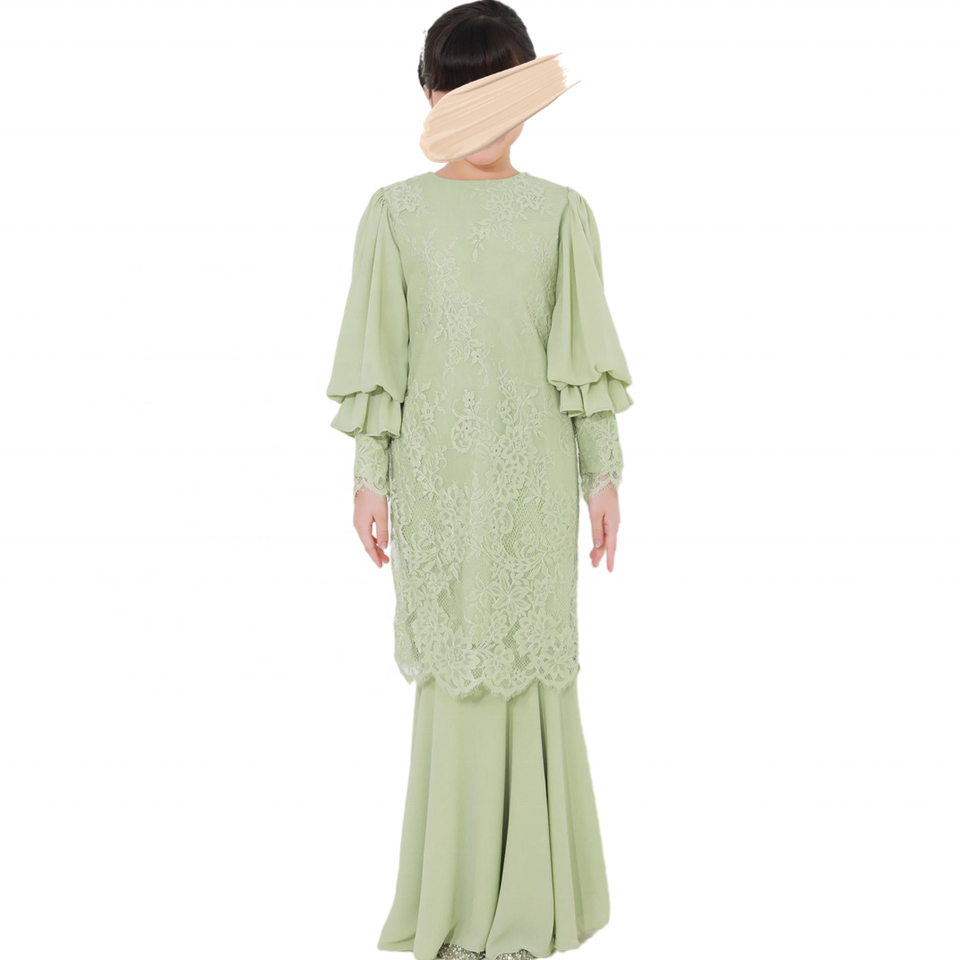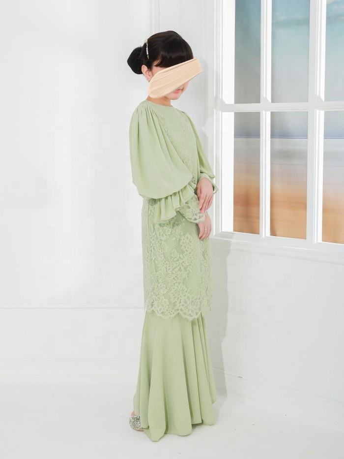 SIPO Malaisie Enfants Élégant Couleur Unie Motif Moderne Double Couche En Mousseline De Soie Bouffée Baju Kurung Doux Polyester Abaya