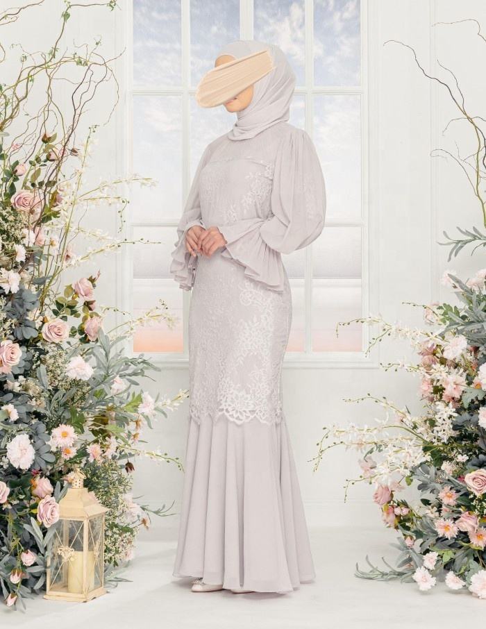 Robe modeste SIPO 2 ensembles Baju Kurung Borong broderie avec dentelle couleur unie coton Vietnam Pahang Polyester Abaya par Sipo