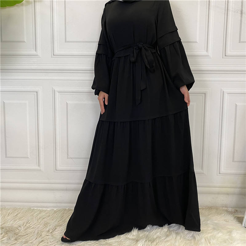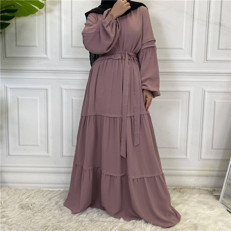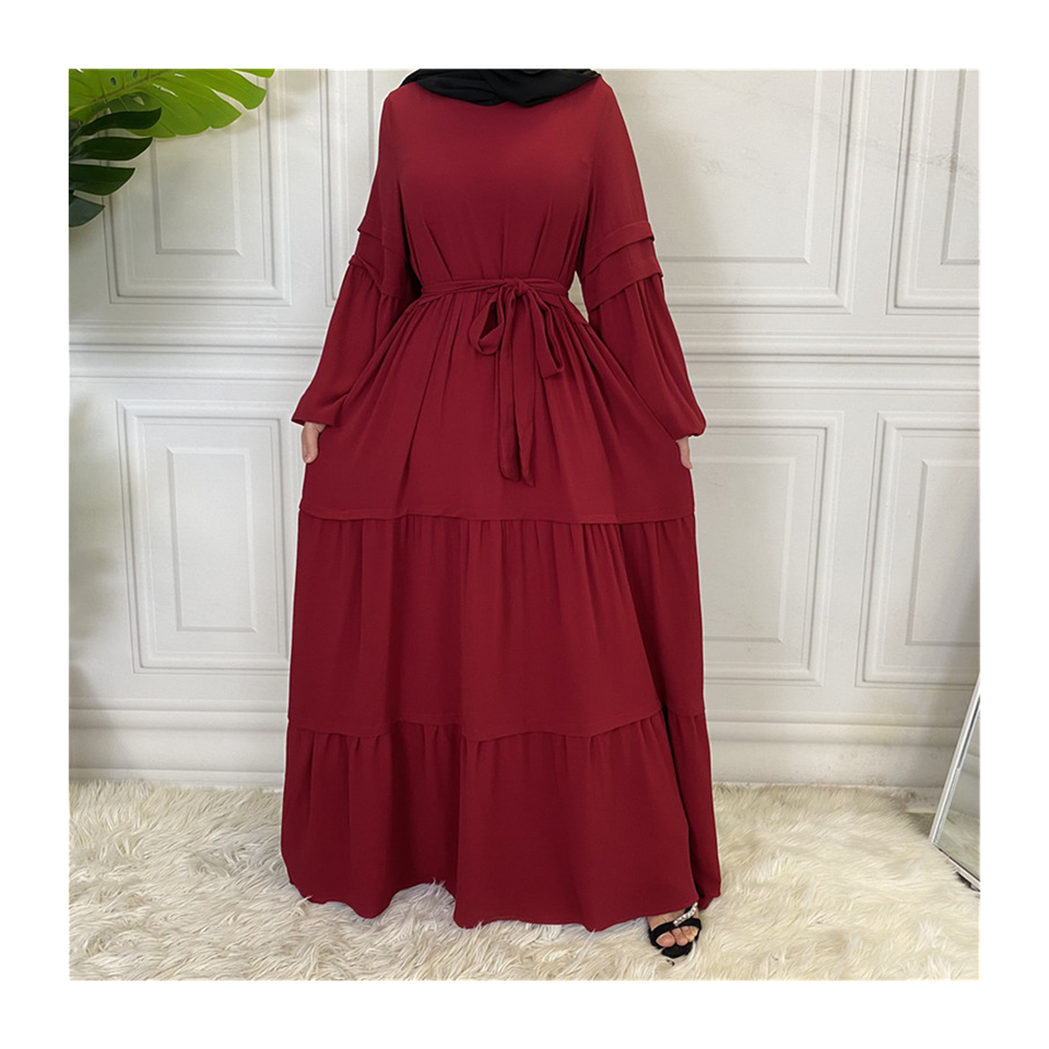 Robe SIPO Jilbab modeste, vêtements islamiques musulmans, robes décontractées, caftan, grande taille, Robe femme plissée couches à nouer, couleur unie