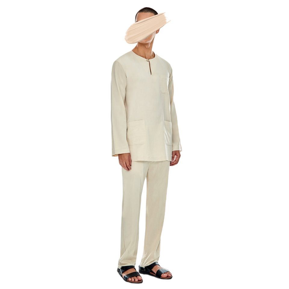 SIPO Top Fashion – vêtements traditionnels malaisiens pour hommes, couleur unie, col rond Tmj Baju Melayu