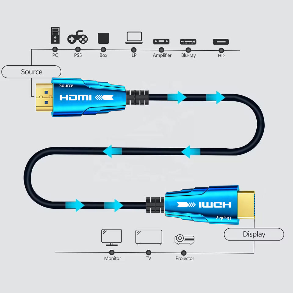 Câble HDMI Fibre Optique de Qualité Garantie Directement de l'Usine SIPU 4K 60Hz Haute Vitesse Câble HDMI 10m 20m 30m 50m 100m