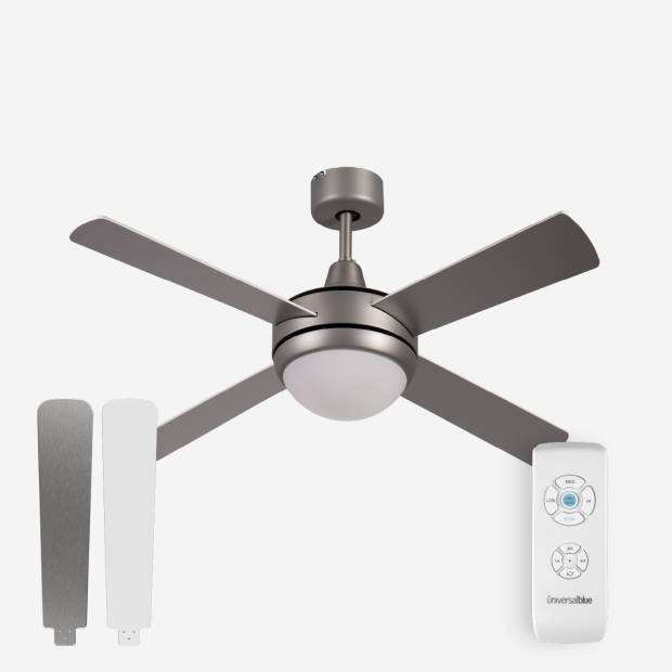 Ventilateur de plafond moderne UNIVERSALBLUE 3042X en acier inoxydable de 106 cm avec lumière, moteur AC en métal, télécommande, Espagne, hôtels, foyers