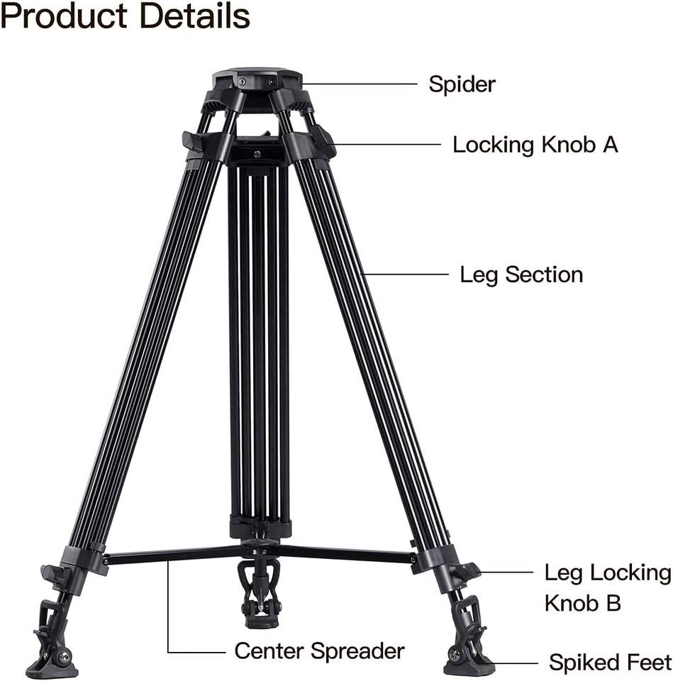 Trépied vidéo SIRUI SH-25, trépied de diffusion professionnel avec tête fluide pour caméras, plate-forme universelle et poignée pour inclinaison
