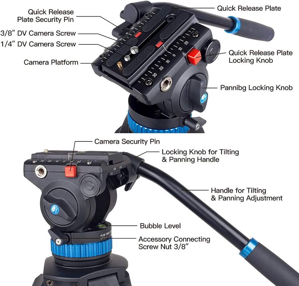 Type de tête de trépied:Têtes vidéo, Têtes fluide
