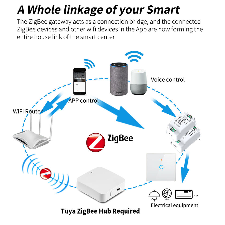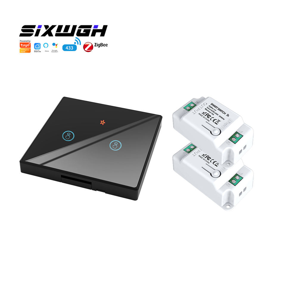 Interrupteur intelligent sans fil SIXWGH Zigbee 2 Gang avec clavier de commande tactile pour éclairage intelligent Alexa Google Assistant Google