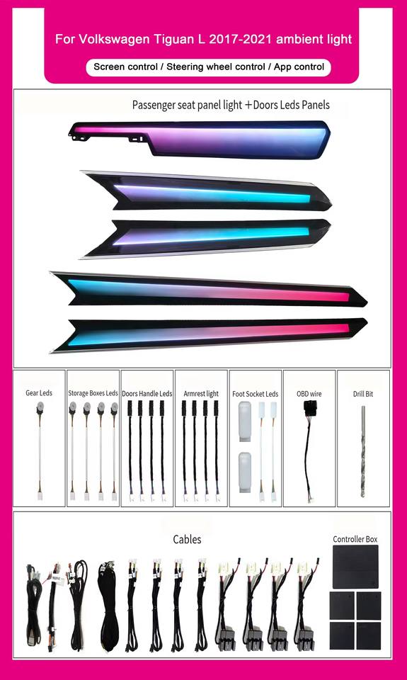 Accessoires de voiture SJC, décoration intérieure, éclairage automobile pour Volkswagen Tiguan L 2017-2021, lumière ambiante LED dynamique 64 couleurs