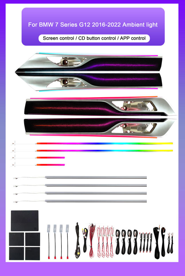SJC Lumière LED intérieure pour voiture pour BMW Série 7 G12 2015-2022 64 couleurs symphoniques Bande lumineuse décorative d'ambiance Accessoires