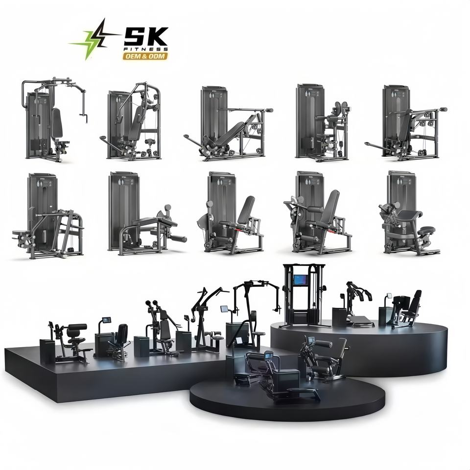 Ensemble de fitness pour salle de sport SK Commercial, équipement de musculation avec plaques de poids en acier, bras de tapis roulant incurvés, entraînement de la force du dos, presse pour la poitrine et les épaules