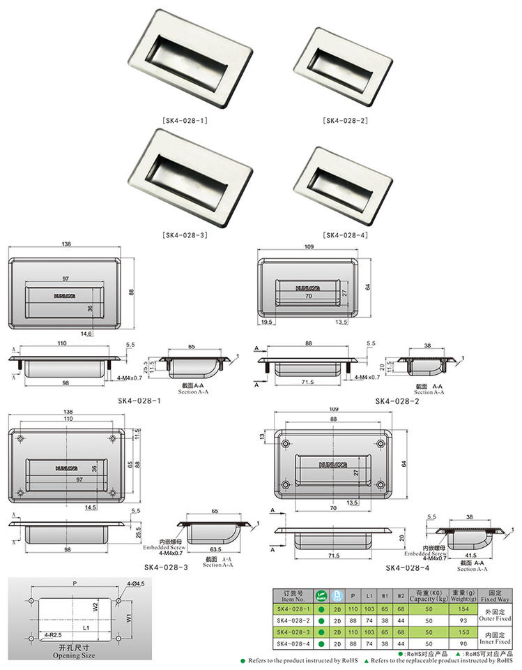 SK4-028 Stainless Steel Recessed Pull Handle SUS304 Wire-Drawing Finish Flush Mount Entry Bedroom Bathroom Exterior Hotel Hall