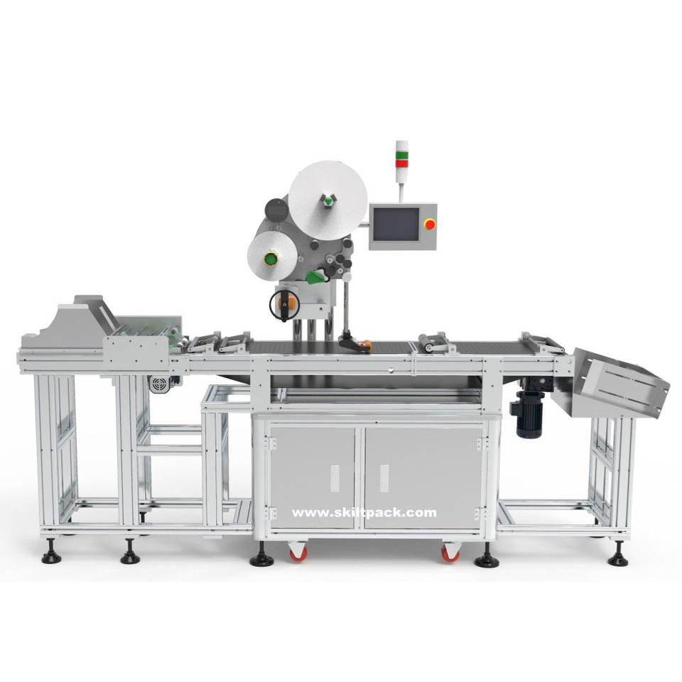 Machine d'étiquetage automatique de sacs SKILT avec alimentateur, fabricant de machines d'étiquetage de sachets depuis 1998