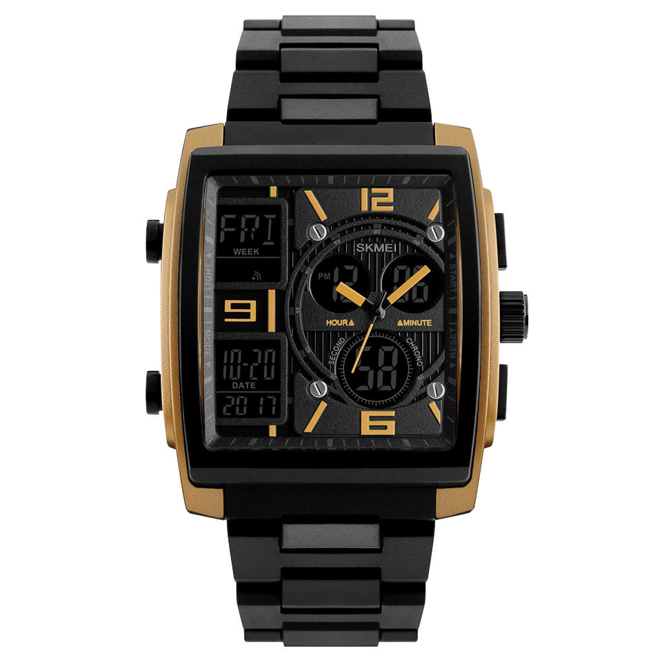 Montres Skmei double fuseau horaire 1274, montre numérique, montre de luxe dorée.