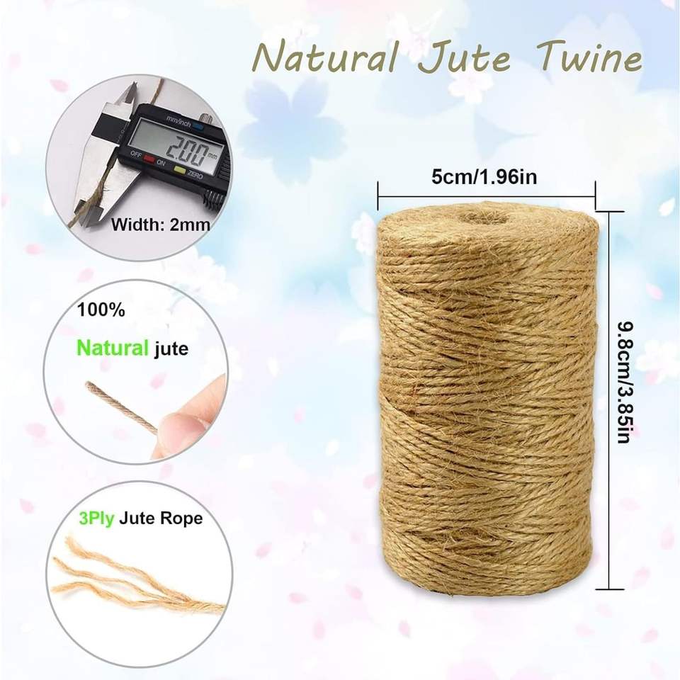 SKY-TOUCH 100M Natural Jute Twine 3 Ply 2mm Thickness Brown Twine for Garden String Floristry and Decoration Craft Supplies