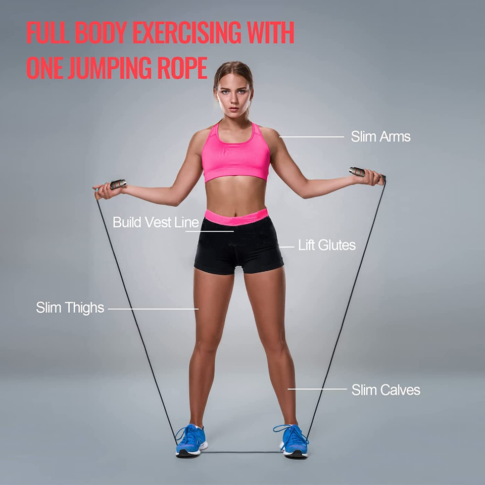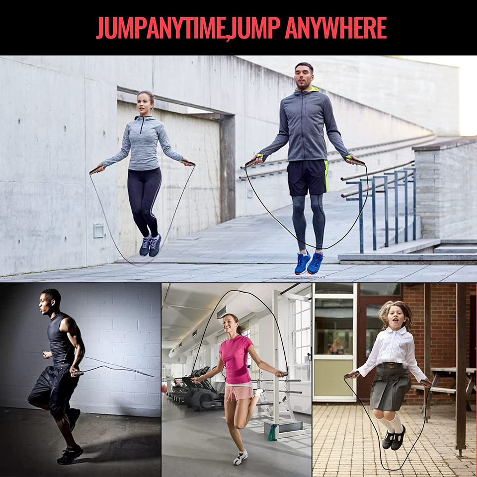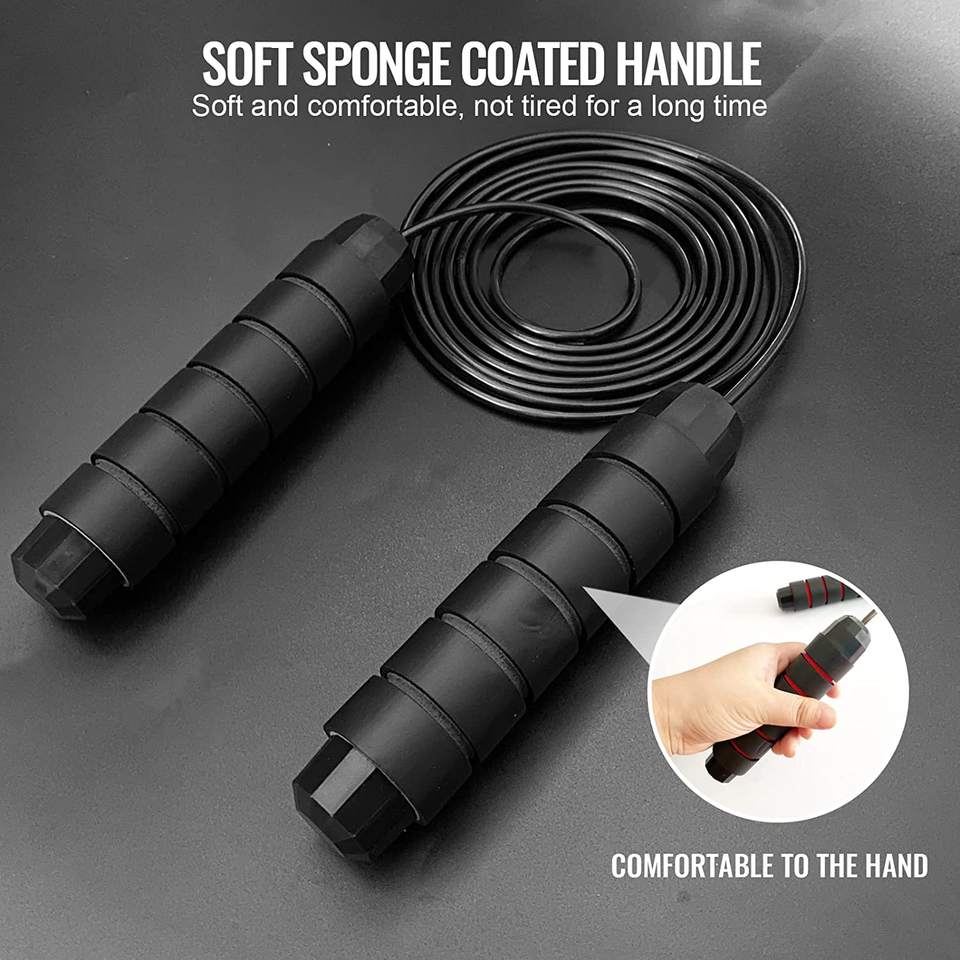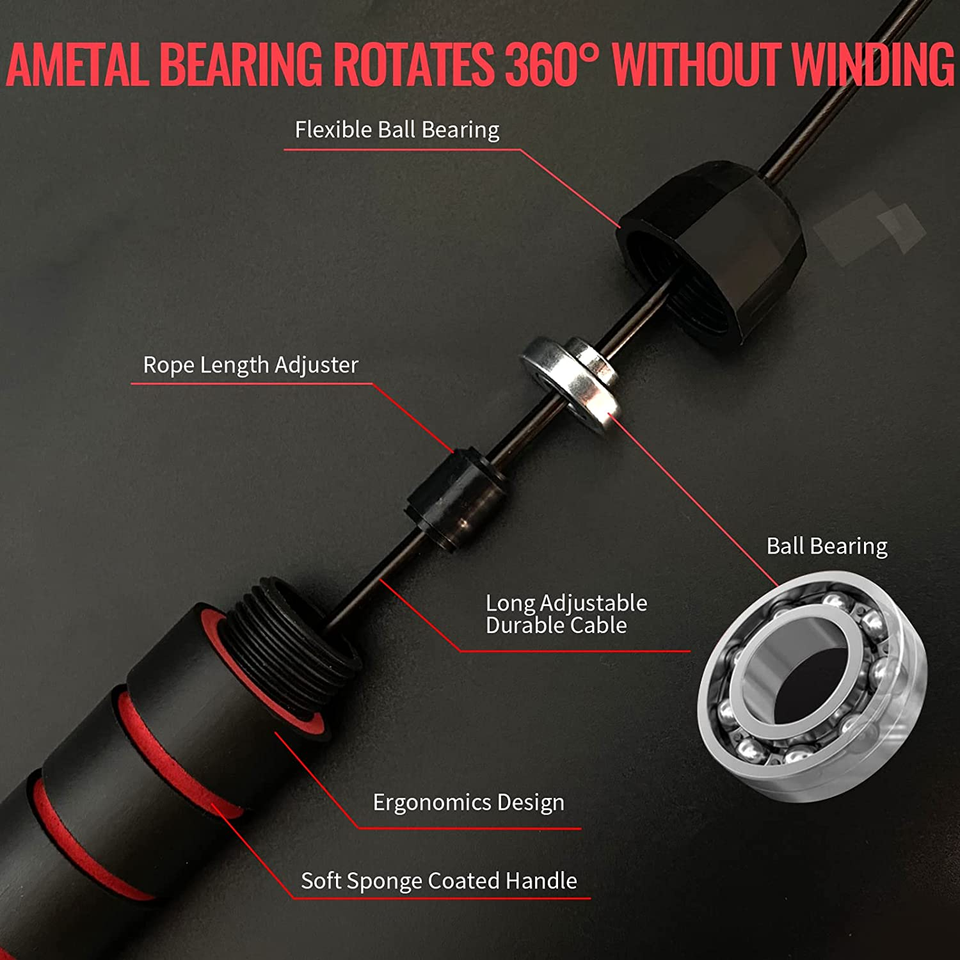 Corde à sauter réglable SKY-TOUCH pour hommes, femmes et enfants - Rouge avec poignées antidérapantes en mousse 160g pour exercices en plein air