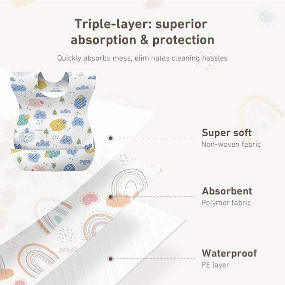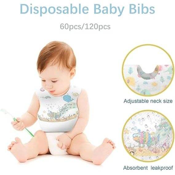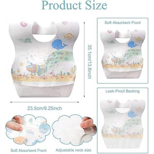 Bavoirs jetables imperméables SKY-TOUCH, récupérateur de miettes portable pour filles et garçons, 60/120 pièces emballées individuellement, approvisionnement OEM, 0g kg