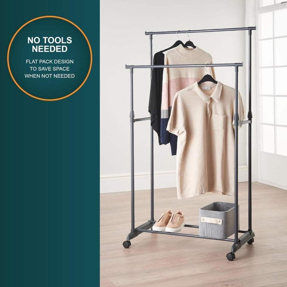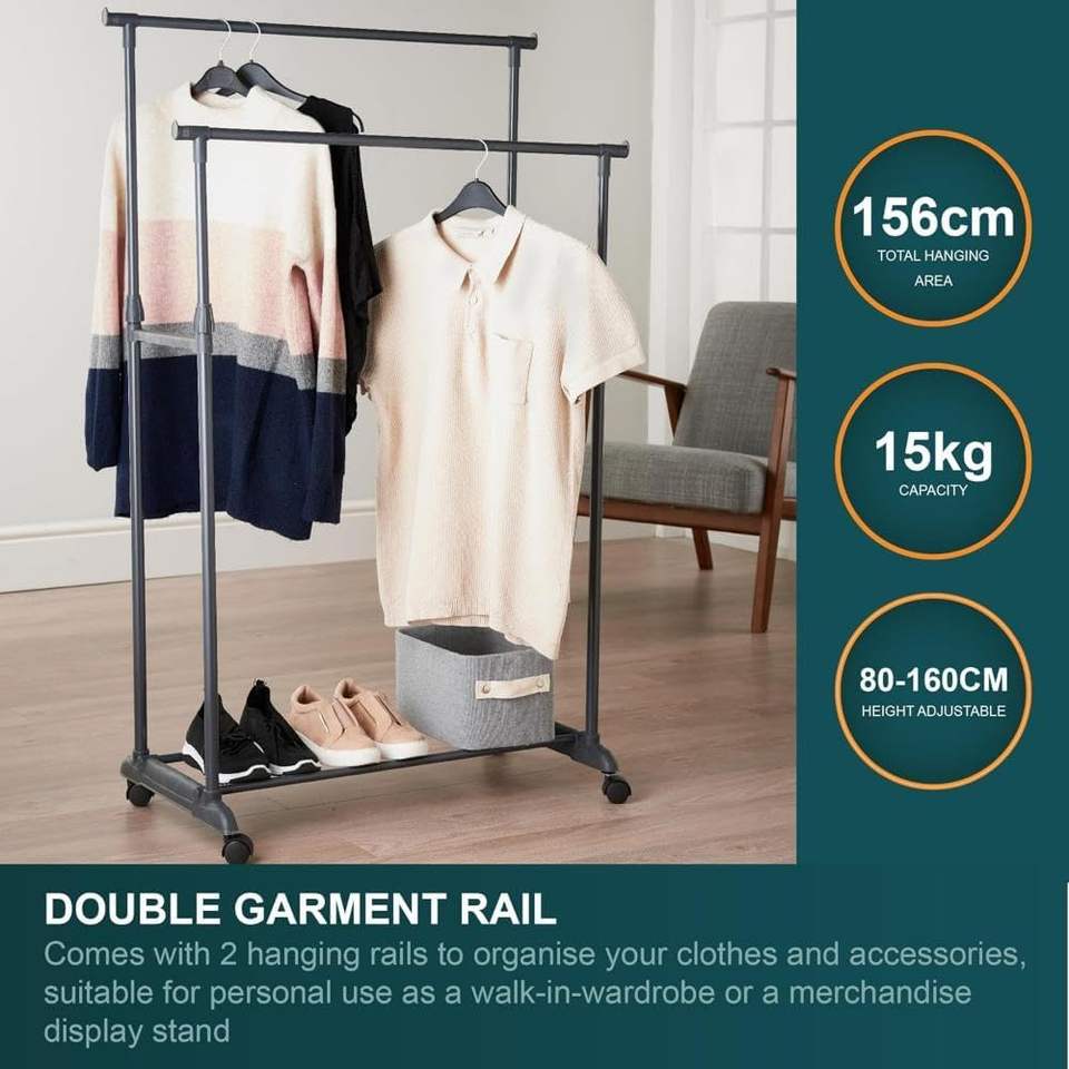 SKY-TOUCH TRADING FZE Porte-vêtements mobile double rail avec roulettes pour chambre et buanderie 0kg