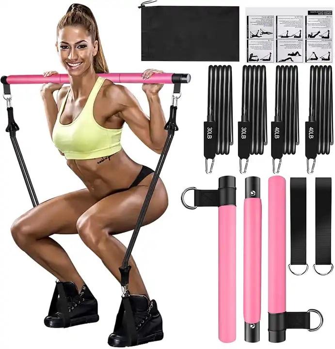 SKYHOPE 3 Section Portable Yoga Pilates Bar Kit With Resistance Bands Exercise Stick Pilat Bar