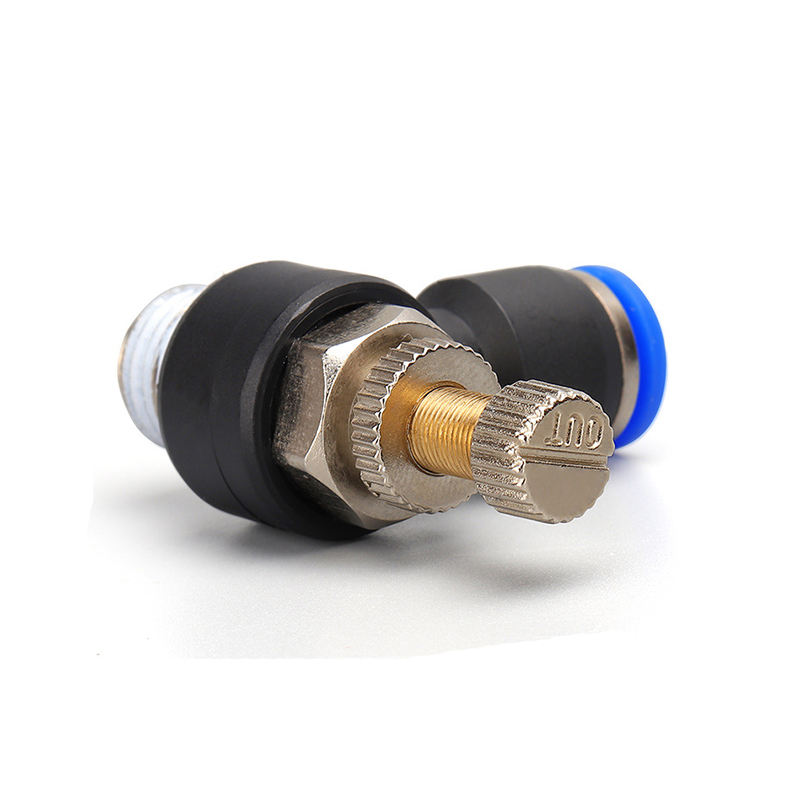 Le raccord pneumatique en plastique de soupape de commande de vitesse de SL avec l'accélérateur pivotant réduit les pièces pneumatiques de vitesse de montage pneumatique