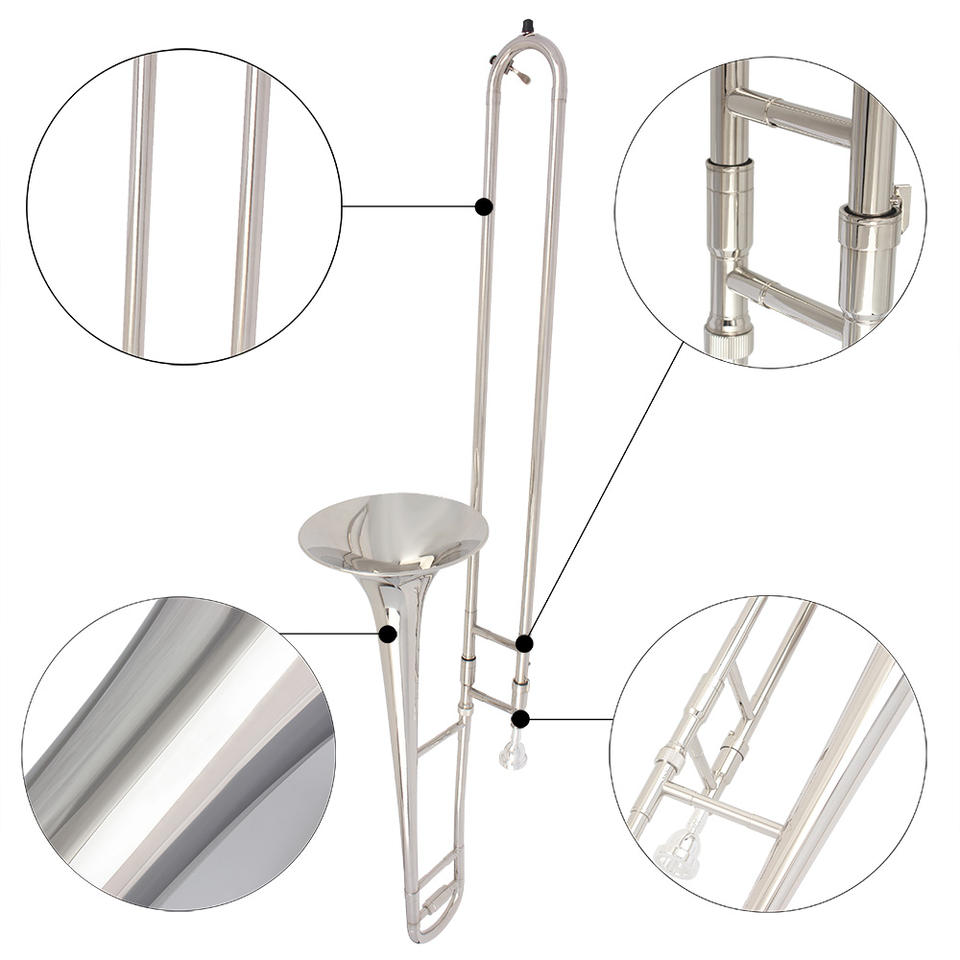 Trombone ténor en Sib pour débutants SLADE, argenté, OEM, avec étui, embouchure et huile