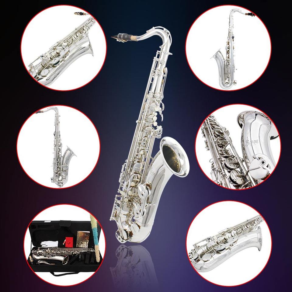 SLADE Saxophone ténor argenté Instrument à vent professionnel avec accessoires de saxophone ténor Instruments de musique saxophone en laiton
