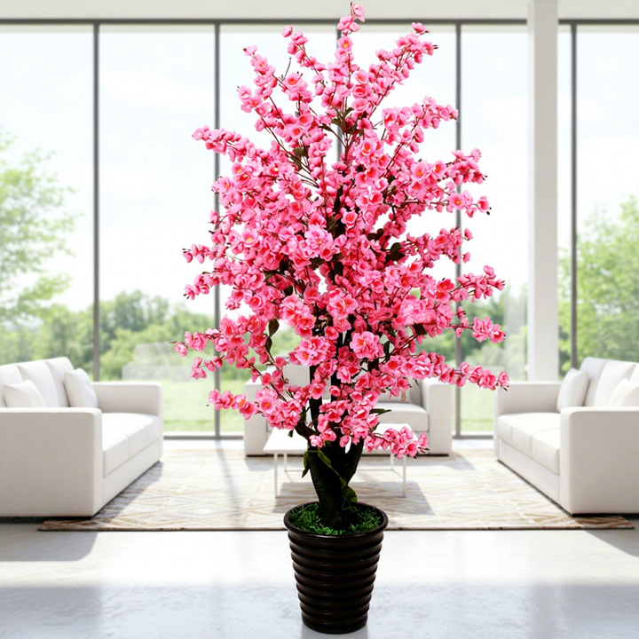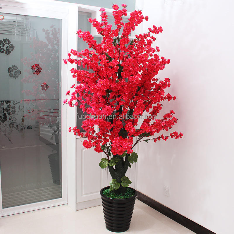SLF046 Vente en gros usine Fleur de pêcher artificielle en soie simulée en pot, Décoration pour maison, bureau, hôtel, Plante verte artificielle en pot