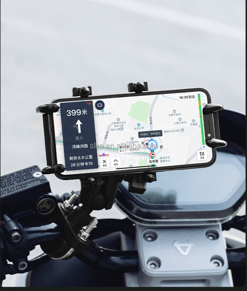Support de téléphone portable pour moto SLKE en alliage d'aluminium, rotation à 360°, antidérapant, rétractable, réglable