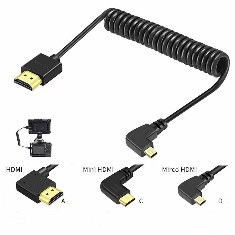 Câble de caméra SLR HDMI 2.0 4K câble à ressort angle gauche droit hdmi vers mini câble micro hdmi moniteur Atomos